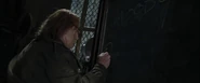 Crouch Jr. attended the trial of Igor Karkaroff who was a Death Eater around that time. Igor lists out the names that were involved with the torture and murder of Frank and Alice Longbottom. However, Crouch Jr. knows that Igor is going to say his name, and is attempting to leave the courtroom, until Igor says his name to the entire Ministry officials, including Crouch Jr.'s father Barty Crouch Sr. Crouch Jr. attempts to scamper from the courtroom, but Moody repels him and Crouch Jr. is restrained by the Ministry officials. His devastated father disowns his son before sending him to Azkaban.