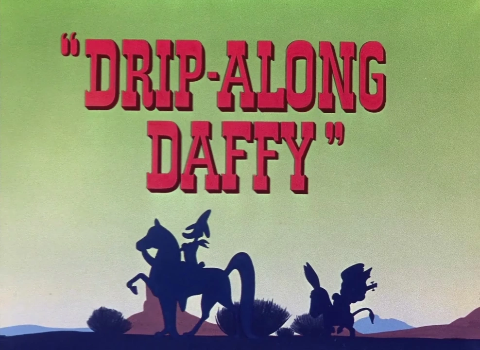 Daffy, introduced as a "Western-Type Hero" and Porky (billed as "Comedy Relief") ride along the desert until they come across a small town that's so full of violence, the population sign changes immediately when someone gets shot. Daffy notices that the last sheriff is shot, and the town needs a new sheriff. Looking through his various badges (which include "Chicken Inspector" and "Oh, you kid!"), Daffy picks out a sheriff badge and rides into town on his horse 'Tinfoil', with Porky following behind on his small mule.