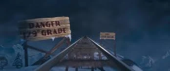 With a 179° grade, Glacier Gulch is, according to the Conductor, the "steepest downhill grade in the world." The Polar Express once went too fast down this roller-coaster-like track after Steamer broke the engine's throttle cotter pin, causing the train to speed out of control.