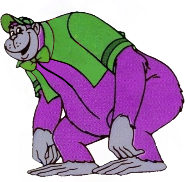 He is a forty-foot-tall purple gorilla. His catch phrase is saying his name twice ("Grape Ape, Grape Ape") after anything anyone says, usually as a form of agreement or acknowledgement of what was said.