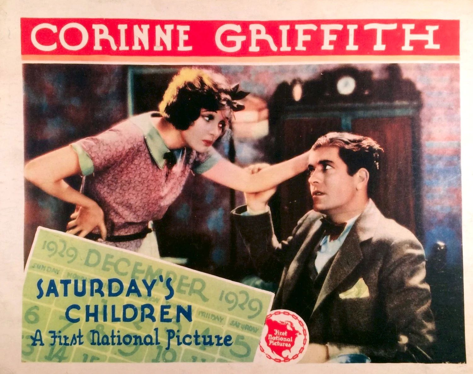 Saturday's Children is a 1929 American sound part-talkie romantic-comedy film directed by Gregory La Cava, and starring Corinne Griffith, Grant Withers, Albert Conti, Alma Tell, Lucien Littlefield. In addition to sequences with audible dialogue or talking sequences, the film features a synchronized musical score and sound effects along with English intertitles. The sound was recorded via the Vitaphone sound-on-disc process. The film was released by Warner Bros. on April 14, 1929.[1][2][3] The film is based on the 1927 play Saturday's Children by Maxwell Anderson.